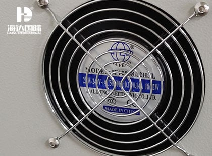 10、測試部分:不銹鋼材質,箱門為兩層5mm厚的鋼化玻璃,可觀察被測試試樣的狀態(tài),后側設計有排風扇,并預留外接排風接口。