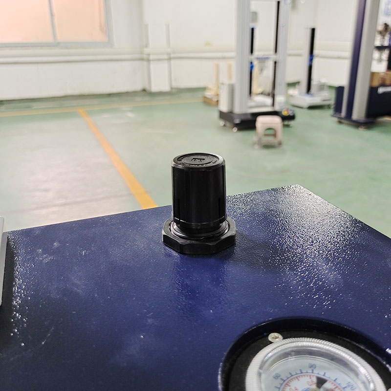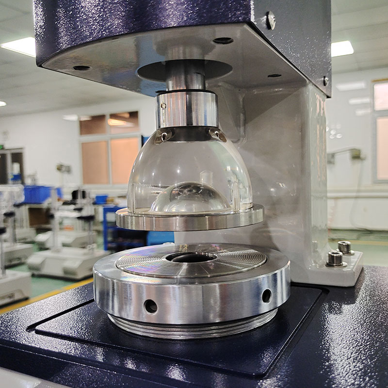 在儀器密封的油缸和壓紙座的容腔內(nèi),裝滿(mǎn)甲基硅油作為壓力傳遞的介質(zhì),當(dāng)電機(jī)帶動(dòng)活塞勻速前進(jìn)時(shí),橡皮膜受到硅油的加壓而突起,此時(shí)夾持在膠膜上方,被上下夾盤(pán)固定住的試樣,均勻受力,直到試樣破裂,處理芯片鎖住最大壓力值,通過(guò)液晶屏顯示該壓力值,此壓力值即為本次試樣的耐破度。